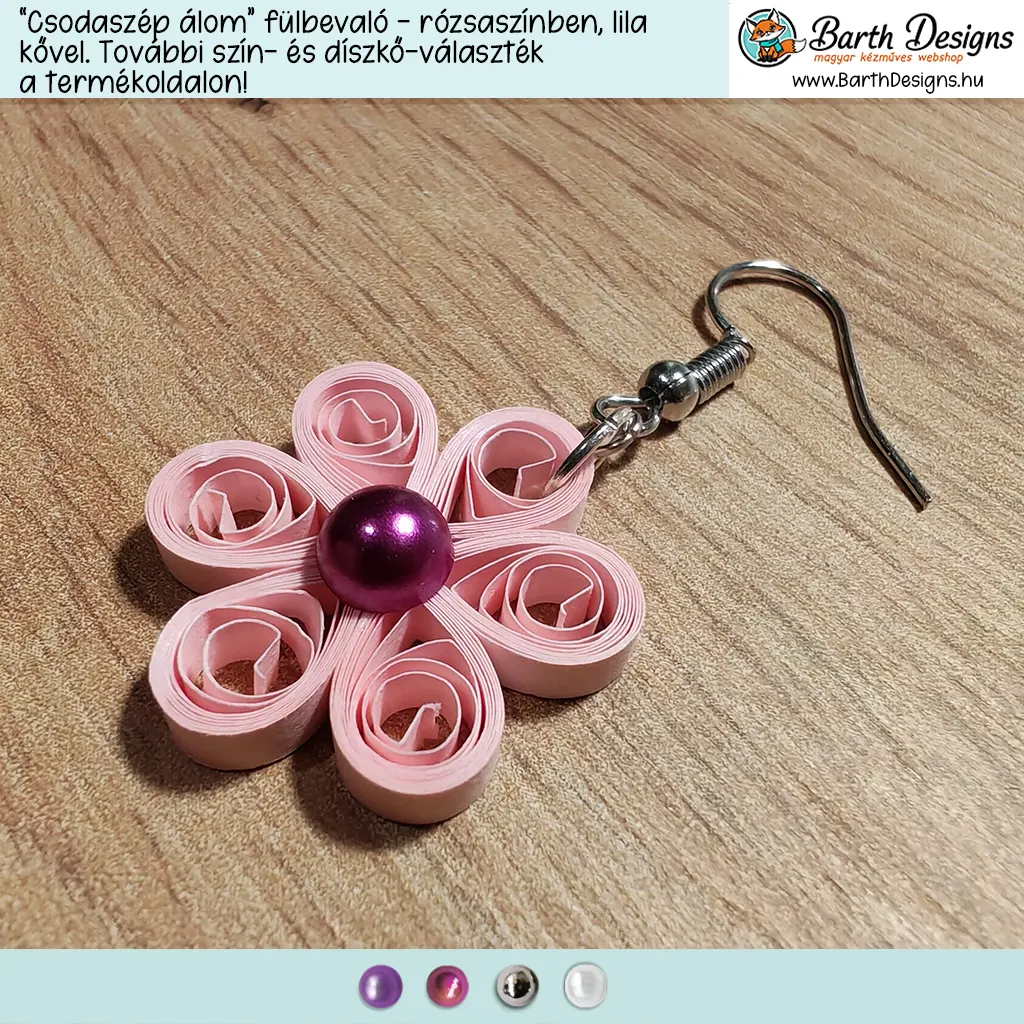 - Kézműves, Quilling technikával készült fülbevaló