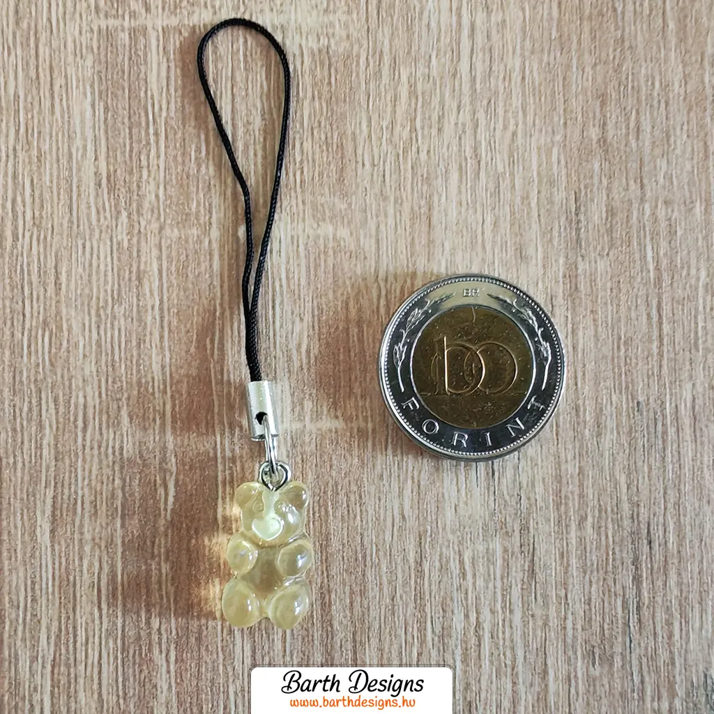 - Műanyag gumi macis kulcstartó halvány sárga színben, állatos kulcstartó, választható színű függővel