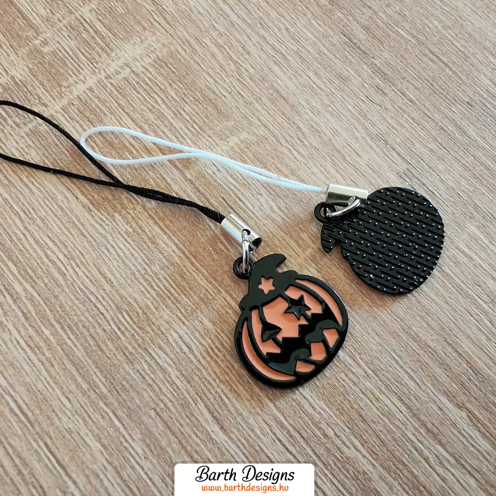 - Fém halloween kulcstartó, függő, dekor – 2 féle színben, választható színű függővel