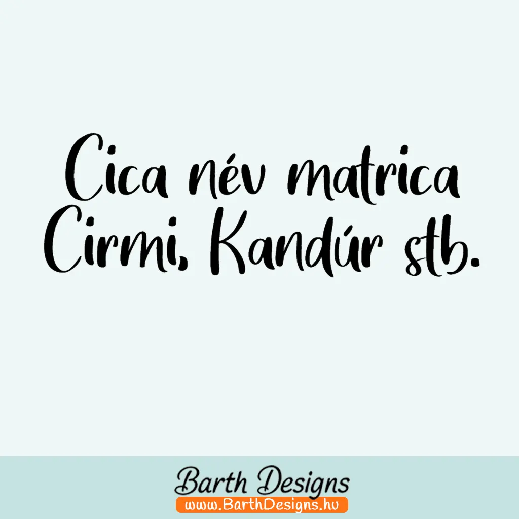 Ha ennél hoszabb névre van szükséged, üzenj nekünk, vagy kérlek szótagold kedved szerint a feliratot, és kétszer tedd azt kosárba. (A matrica két részletben fog érkezni, külön, egymás mellé/alá/stb. helyezve tudod majd felragasztani. Pl. „Cirmos” + „cicuska”)