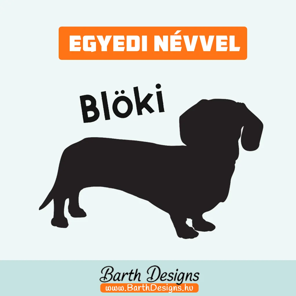 A kutya alak és a név külön kerül vágásra, így tetszőleges helyre, pozícióban felragasztható. A képek egy lehetséges elhelyezési formát mutatnak.