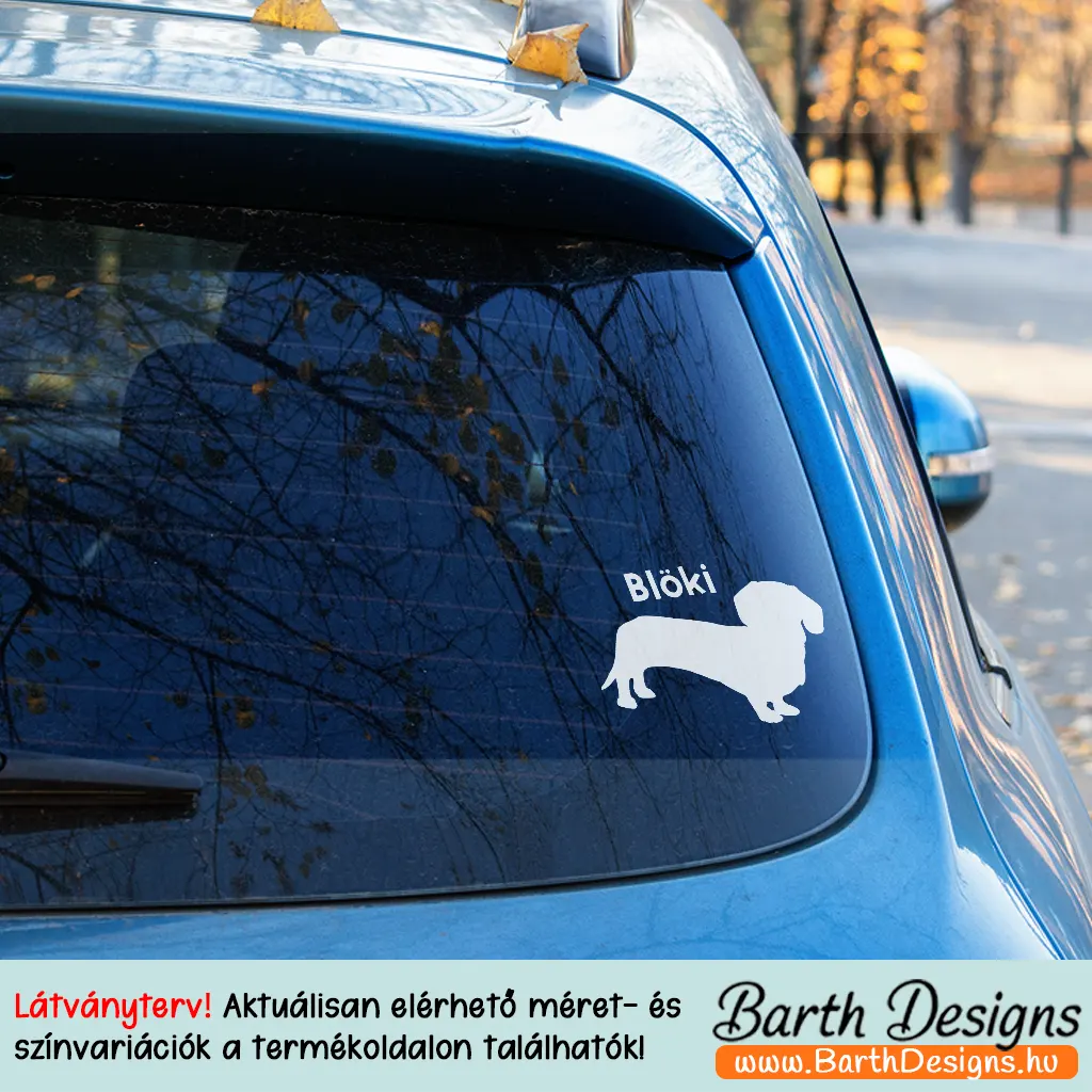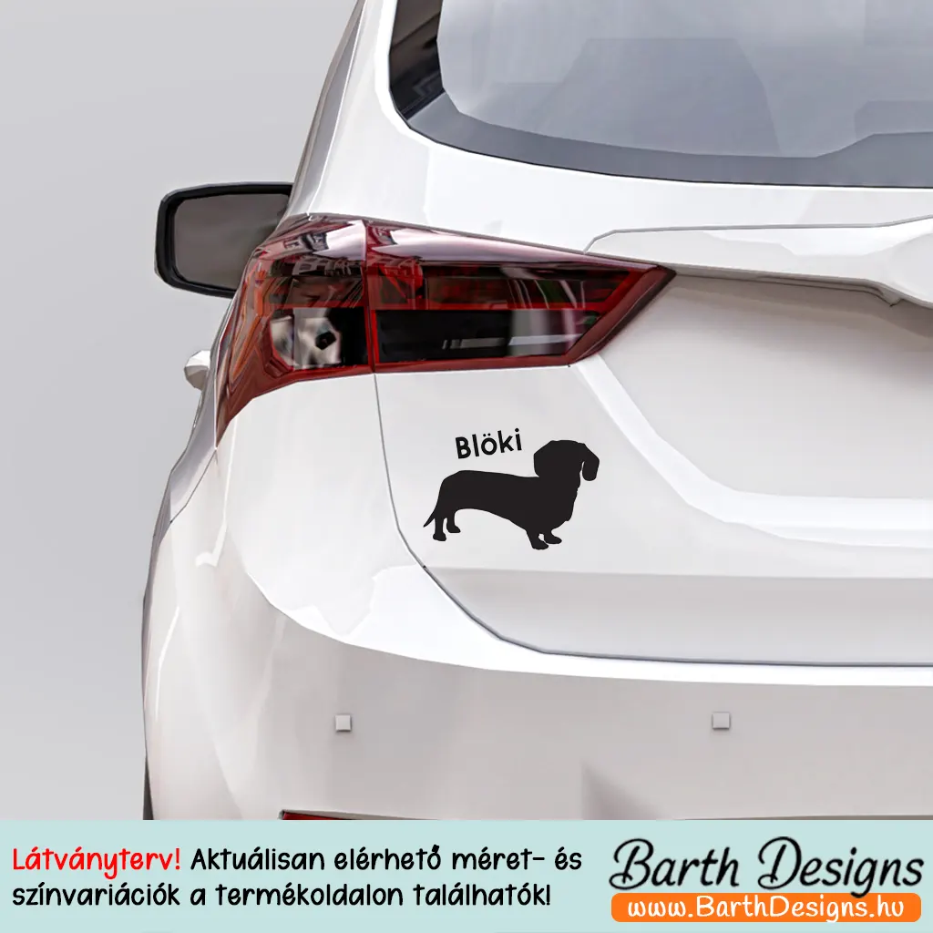 Több variációban tacskó autómatrica névvel No. 4, kutyás matrica autóra