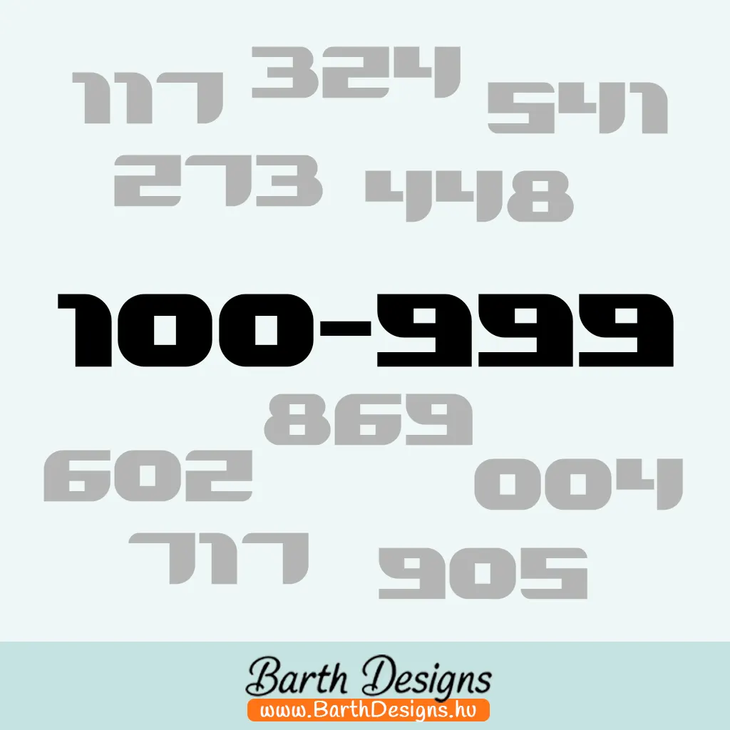 Több színben és méretben: háromjegyű rajtszám matrica