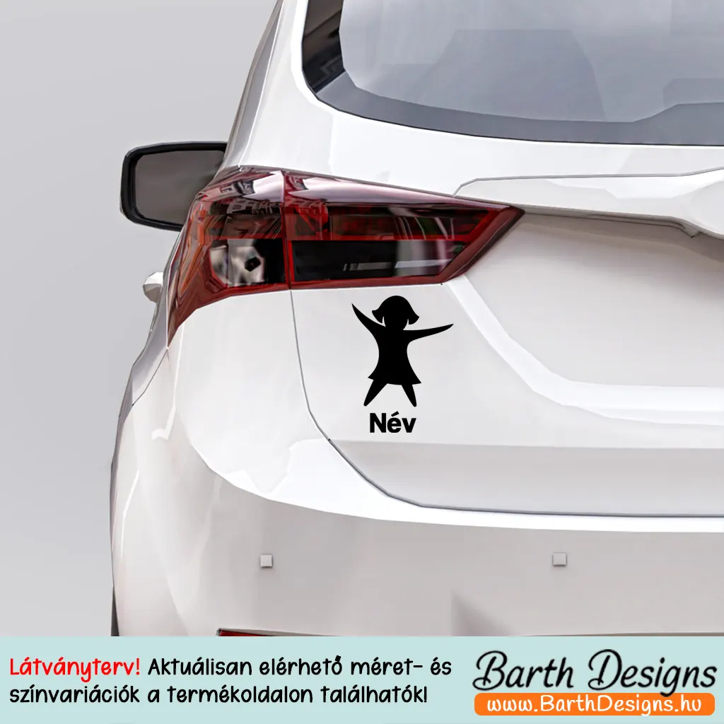 Több variációban autó matirca gyerek névvel No. 7, család matrica, kislány