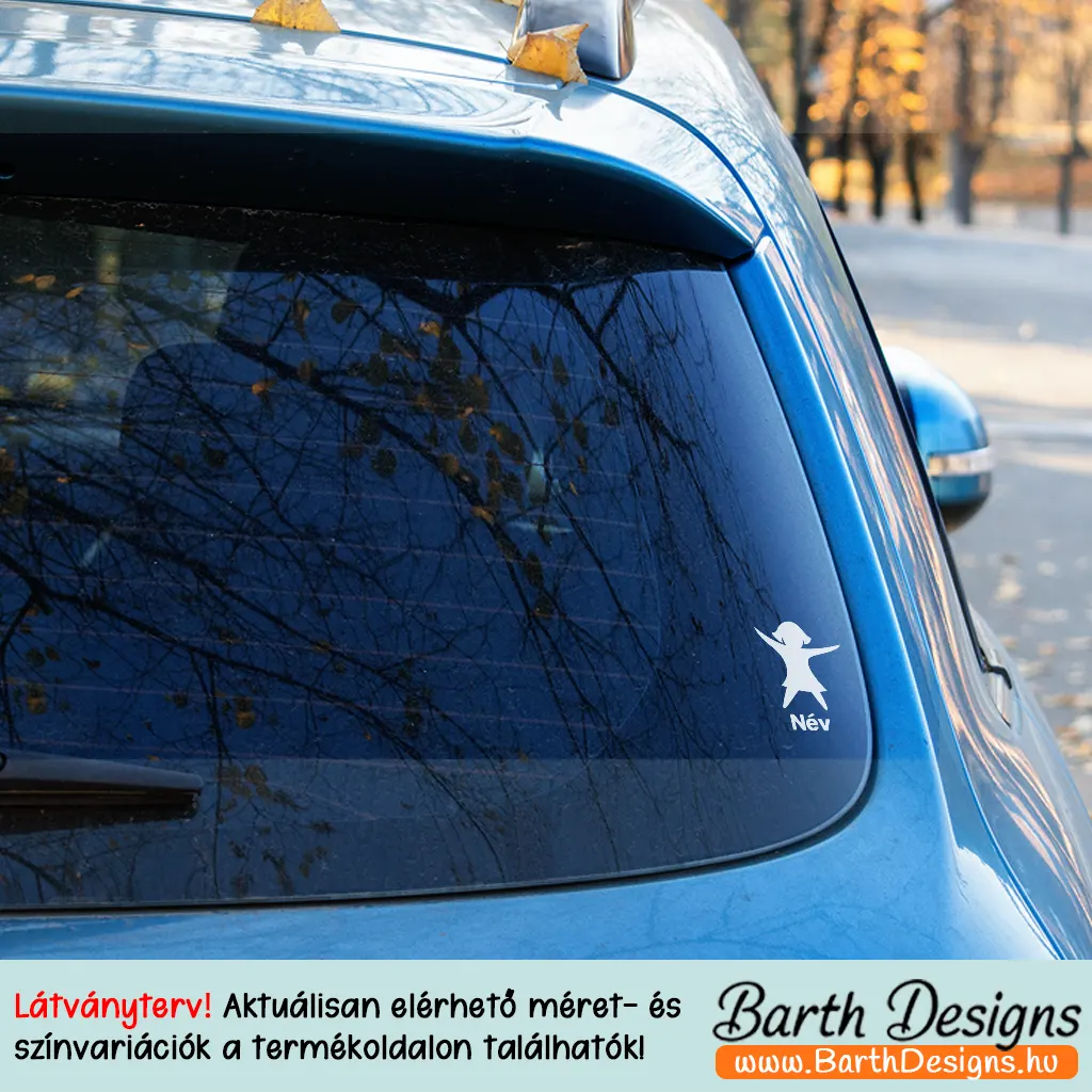 Több variációban autó matrica gyerek névvel No. 1, kislány, család matrica