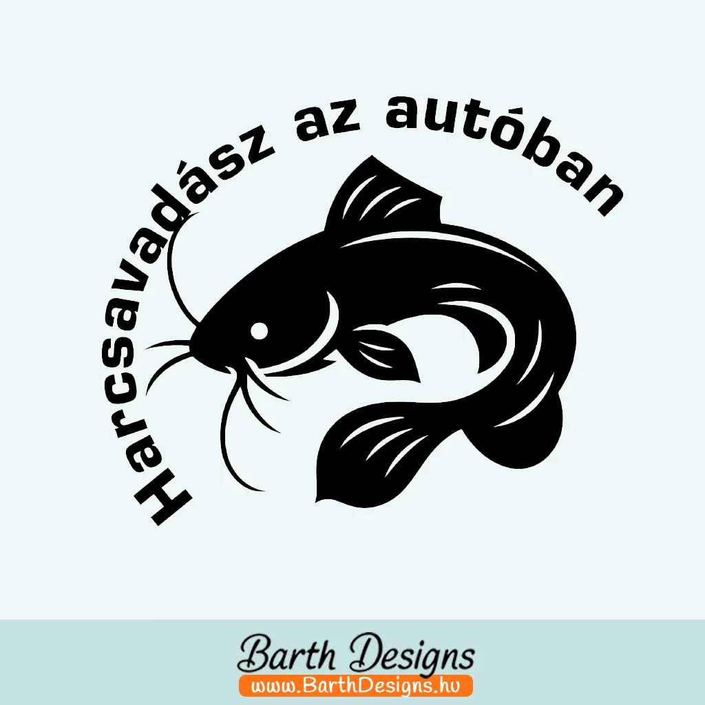 Több variációban Harcsavadász az autóban, harcsa matrica No. 5, horgász matrica