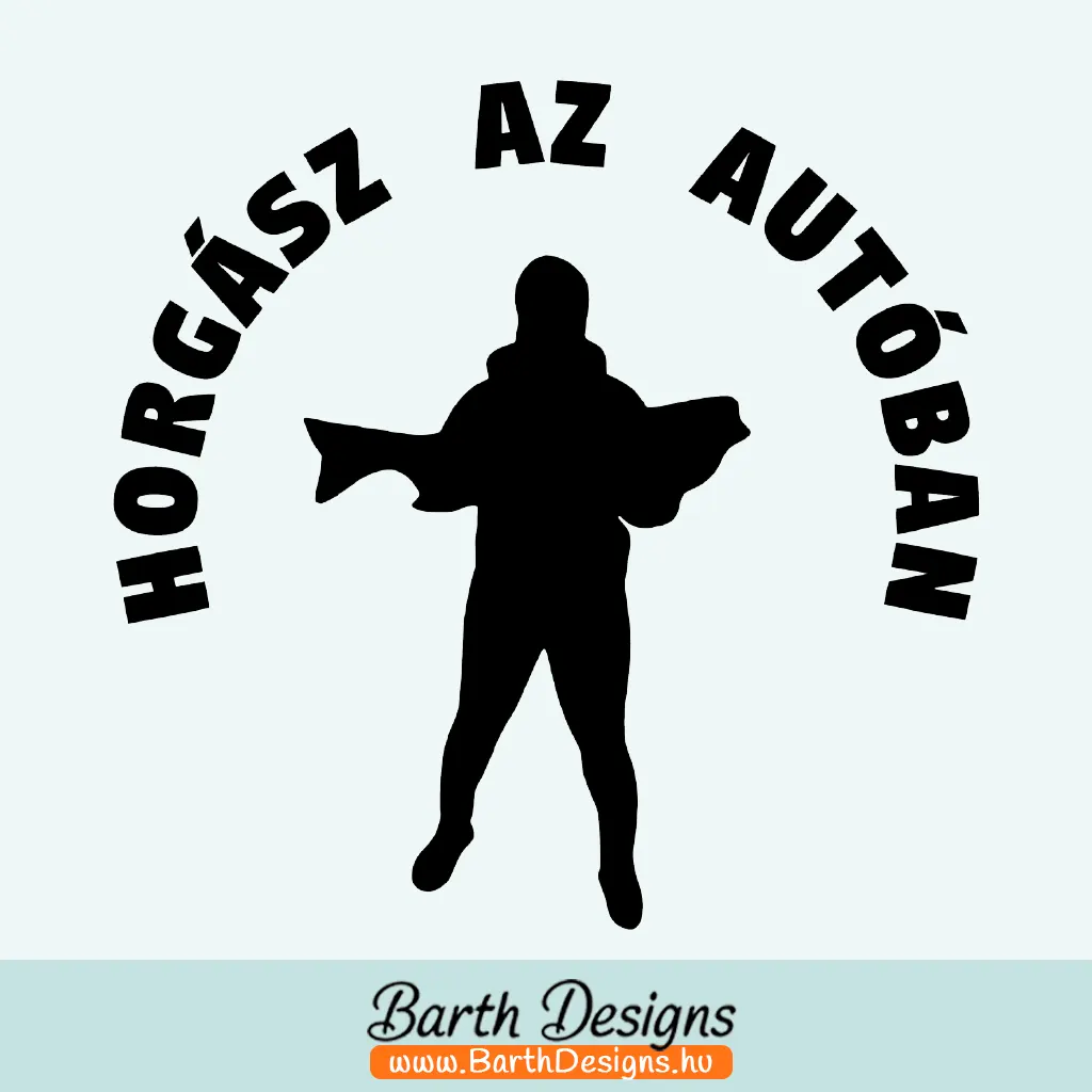 Több variációban horgász matrica No. 4, horgász az autóban, halas matrica autóra