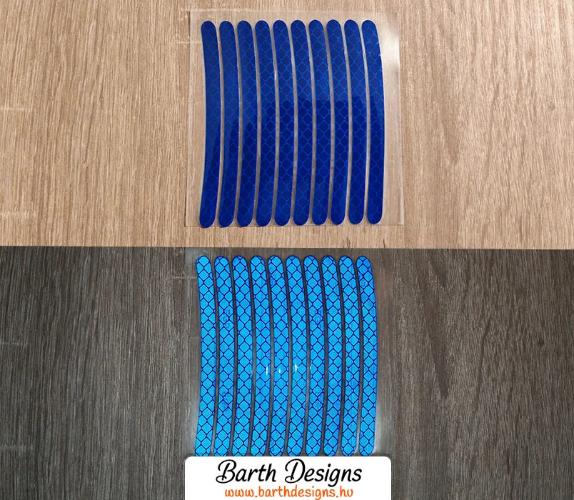 10db-os ívelt kék fényvisszaverő kerékpár felni matrica szett, bicikli matrica