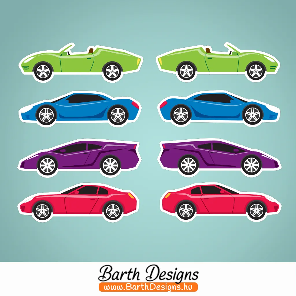 Autós gyerek kerékpár matrica szett No. 1, gyerek bicikli matrica, futóbicikli matrica