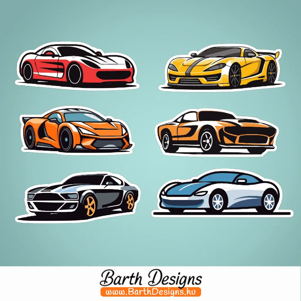 Autós kerékpár matrica szett No. 2, gyerek bicikli matrica, futóbicikli matrica