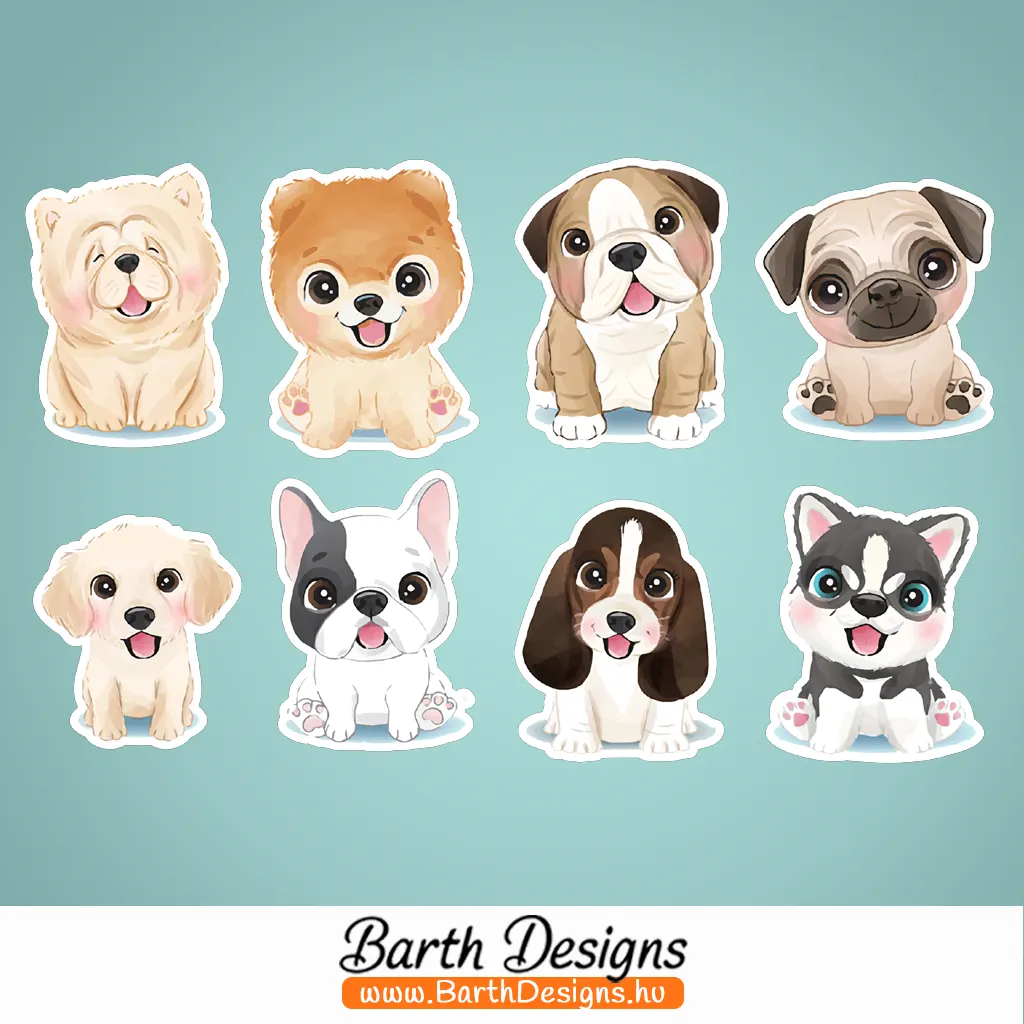- A szett tartalma 1 db kb. 12 cm x 19 cm-es matricaív, rajta nyomtatott, fehér hátterű, víz- és UV-álló kutyás matricákkal (lásd képek)