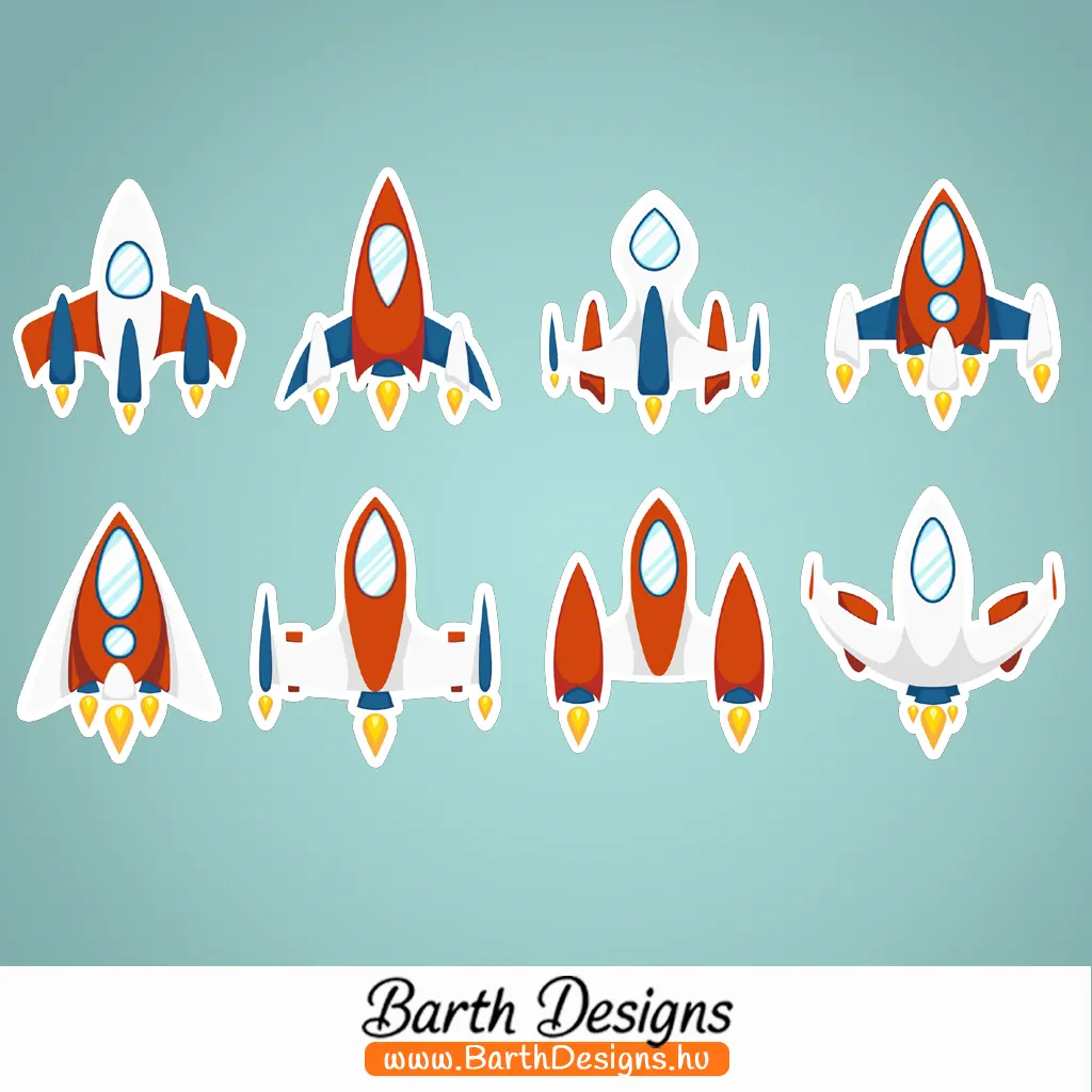 - A szett tartalma 1 db kb. 12 cm x 19 cm-es matricaív, rajta nyomtatott, fehér hátterű, víz- és UV-álló űrhajós matricákkal (lásd képek)