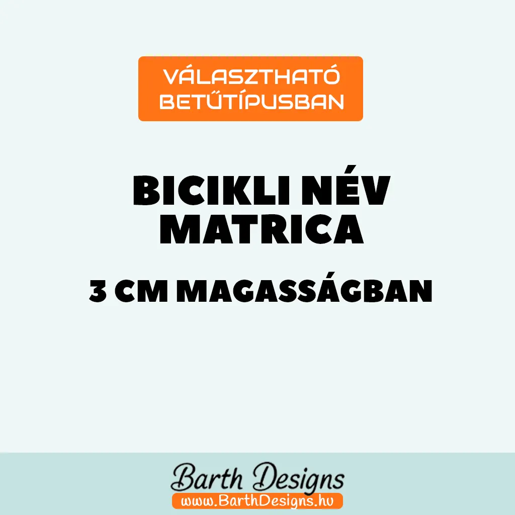 Online szerkeszthető név matrica biciklire, 3 cm-es magasságban