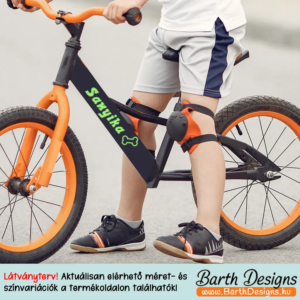 - 1 db kutyás-csontos gyerek név matrica biciklire, gyerek biciklire, futóbiciklire – vagy gyakorlatilag bárhová.