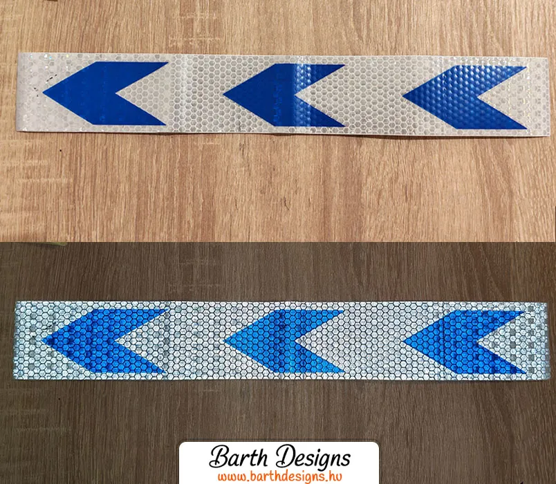 Kék-fehér nyilas öntapadós fényvisszaverő szalag, 33cm