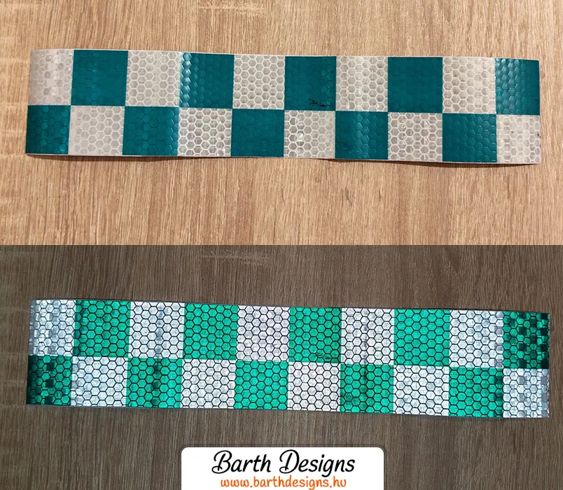 Zöld-fehér kockás öntapadós fényvisszaverő szalag, 25cm
