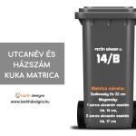 Utcanév és házszám matrica kukára, kuka matrica