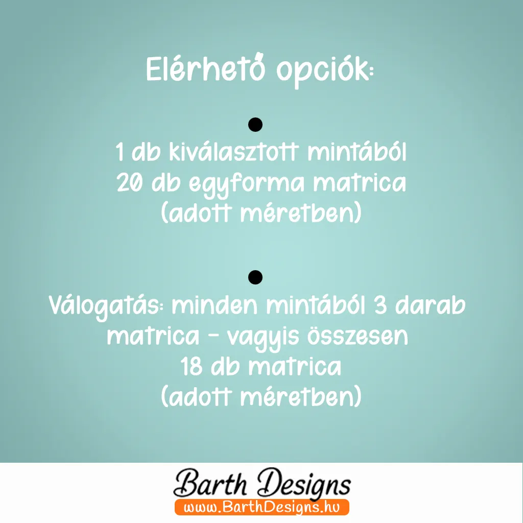 - Vagy kérhető mind a 6 mintából 3-3 darab (összesen 18 db matrica)