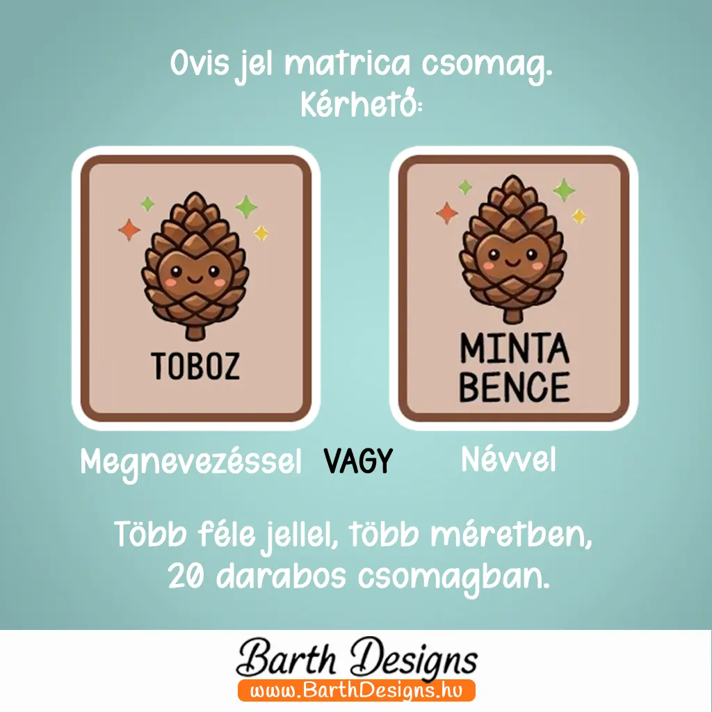 - Csomagban kapható: 1 csomagban 20 darab matrica található – választott felirattal és méretben.