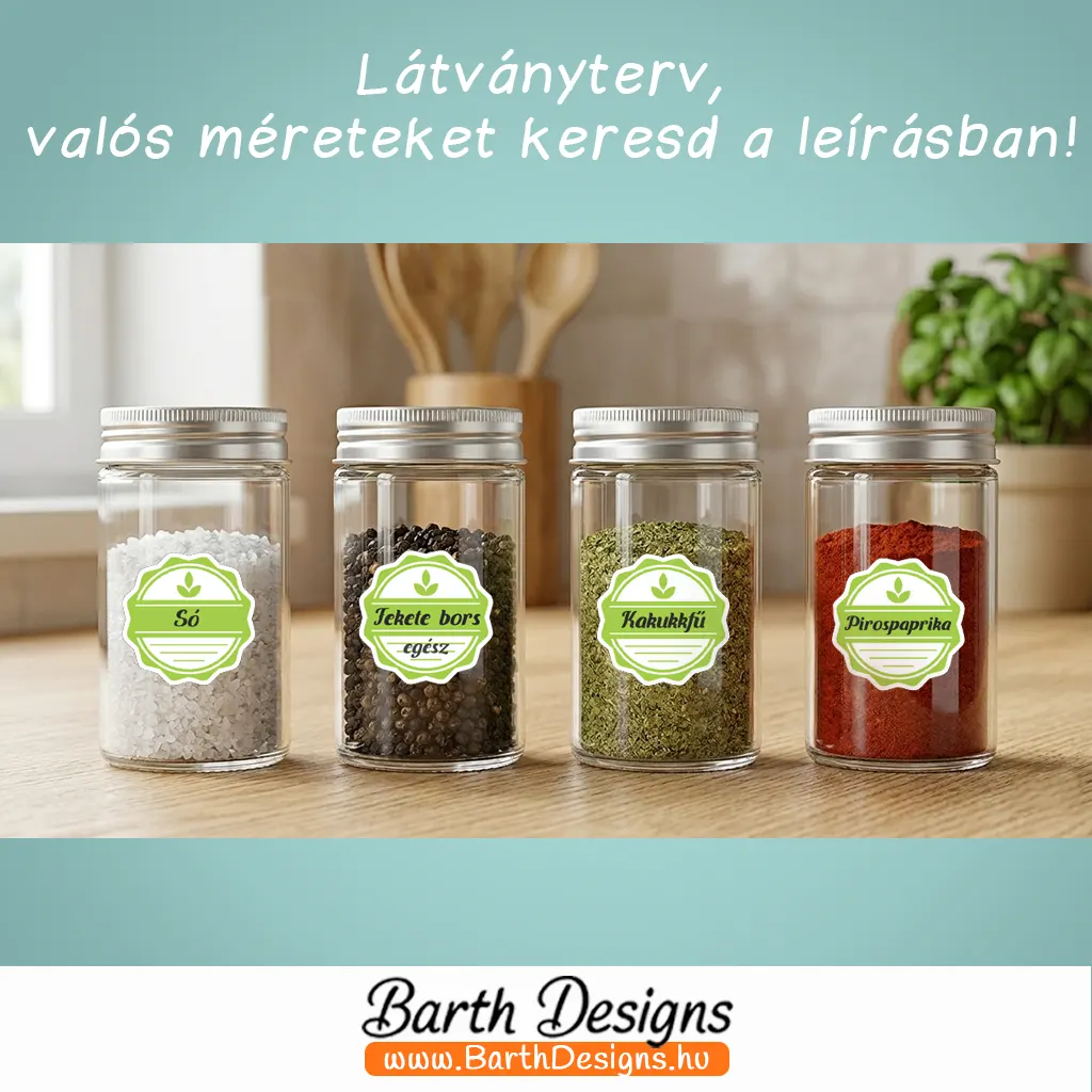 - Kis méretű üres fűszermatrica-csomag: 8 db matrica