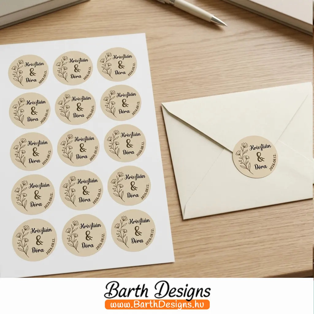 Tedd élménnyé a meghívótokat tartalmazó boríték kibontását egyedi, bézs, letisztult designos záró matricával!