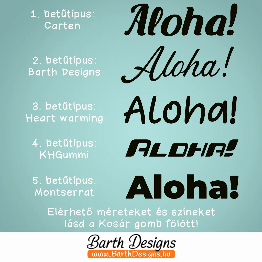 Aloha! – esküvői matrica tükörre, üdvözlő matrica – több színben, méretben és stílusban