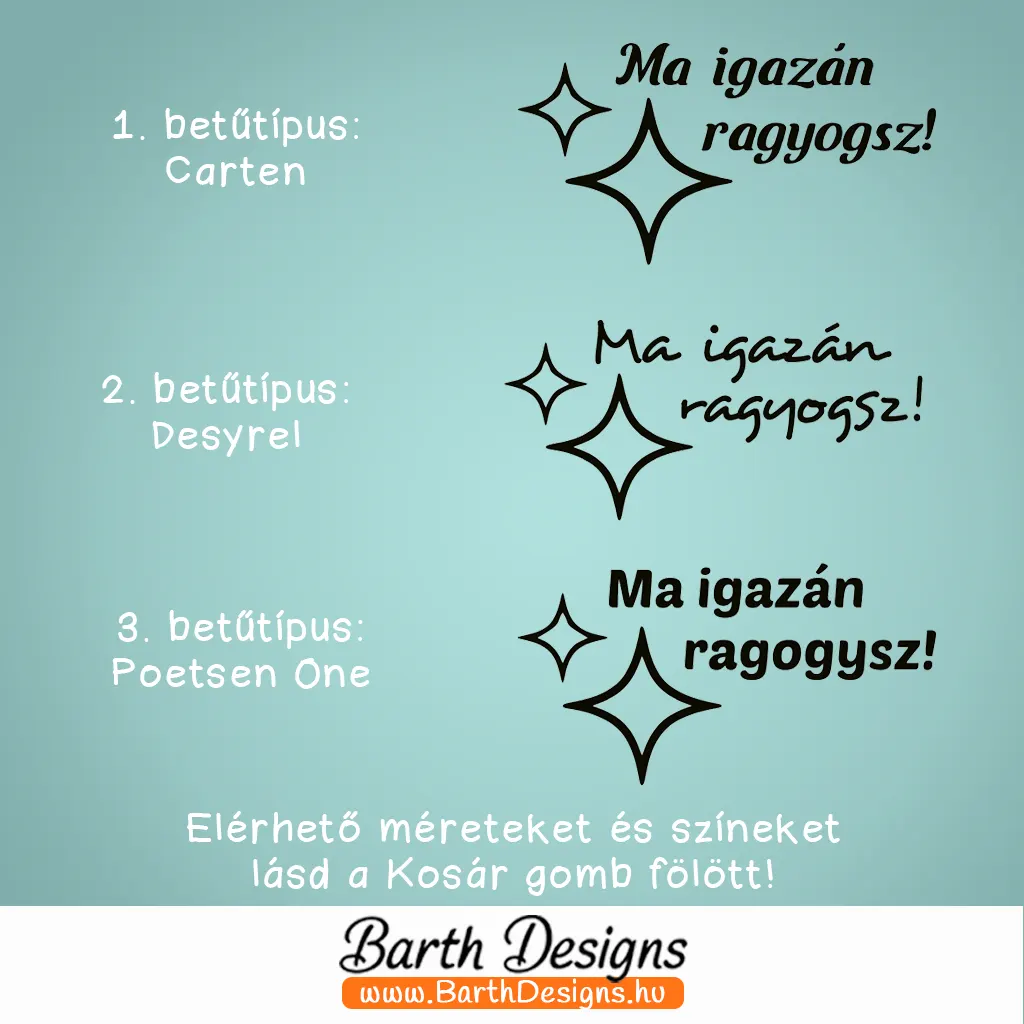 - 3 féle betűtípusban: 1) Carten, 2) Desyrel, 3) Poetsen One