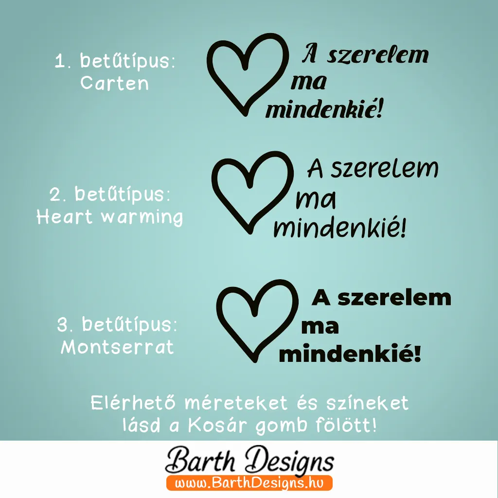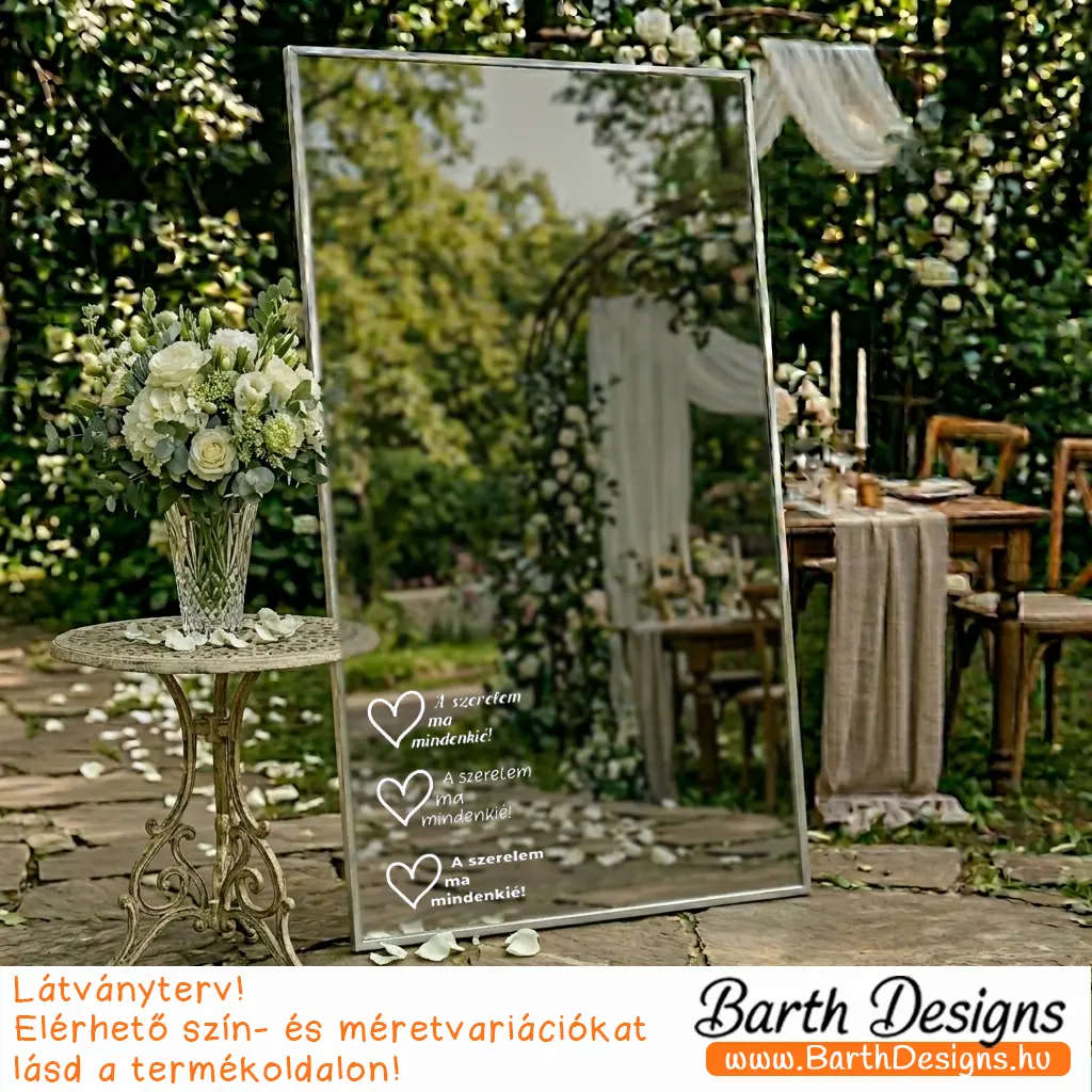 A szerelem ma mindenkié! – matrica esküvői tükörre – több színben, méretben, stílusban