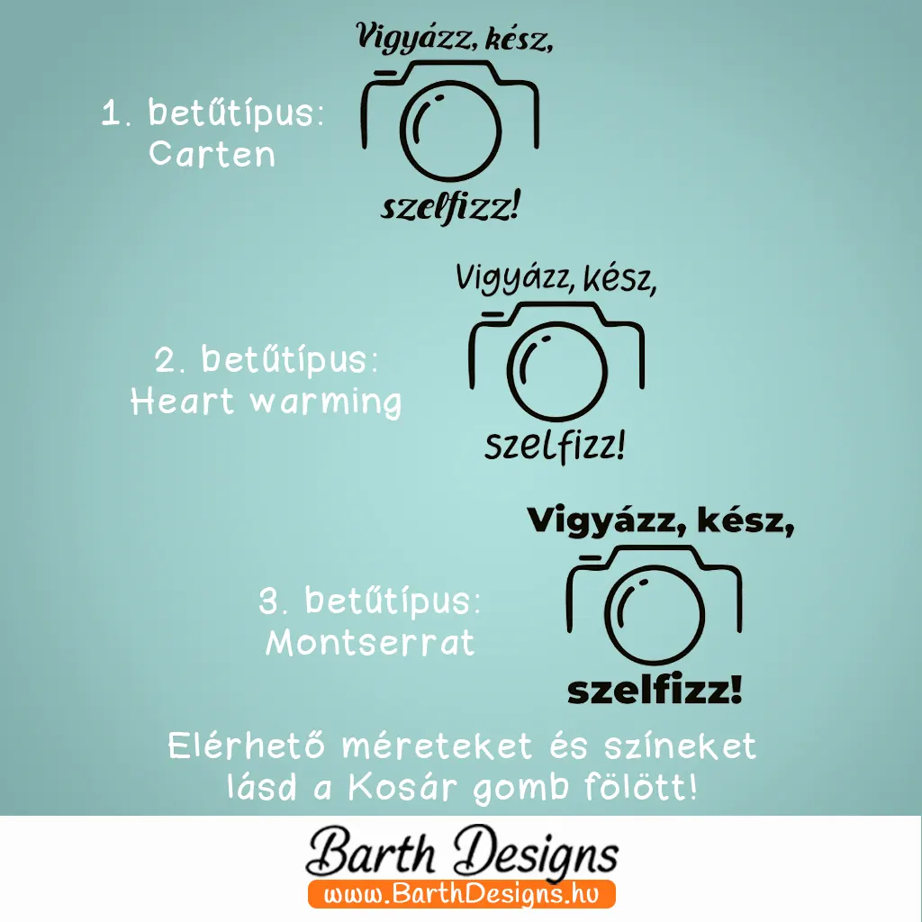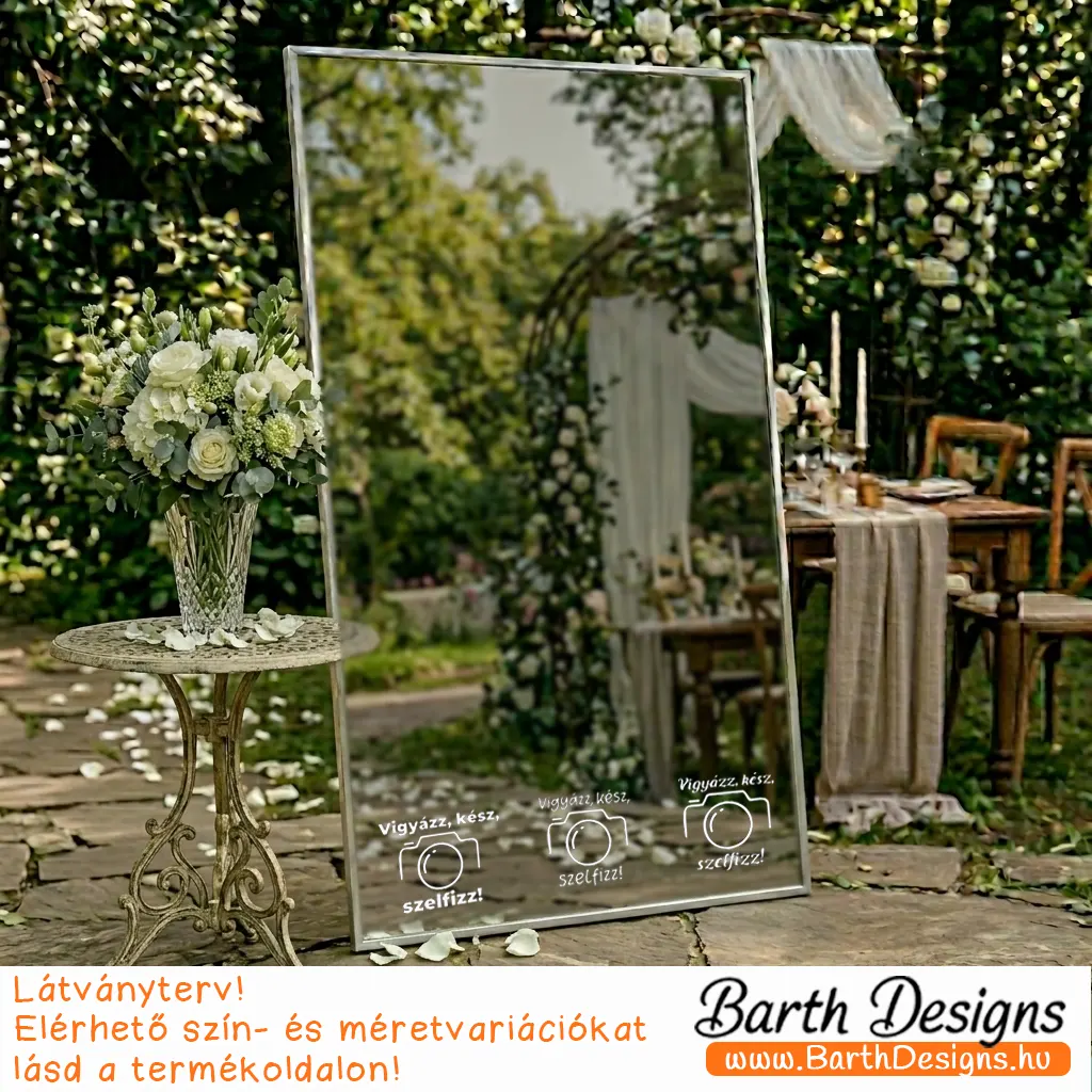 Vigyázz, kész, szelfizz! – matrica esküvői tükörre – több színben, méretben, stílusban