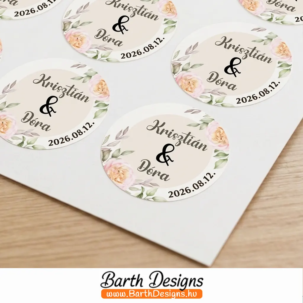- egyedi nevekkel és dátummal ellátott – például Krisztián és Dóra, 2026.08.12),